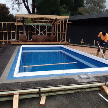We install our own concrete pool edge system to your pool - we supply integrated pit covers and set everything to height in preparation for the concrete grinding